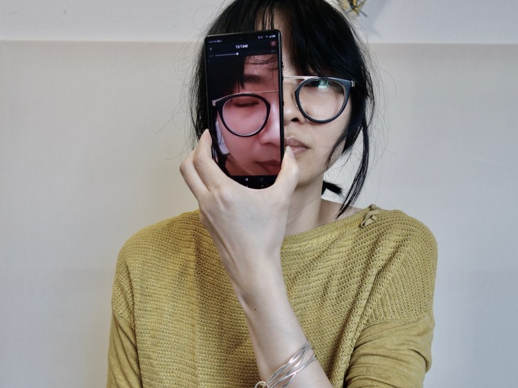 This video records the process of folding. I show the relationship between images on the phone and my physical body. As a result, the time and space between the scene that the phone recorded and the present scene folds into each other. Thereby the crack between reality and the virtual sphere is revealed.